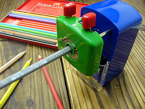 ファーバーカステル「鉛筆削り(大)(TFC-1828)」 価格: 905円 レビュー評価: 4.18 レビュー数:17 製品ポイント デスクの上が楽しくなるカラフルな色とデザインが魅力。 直径8mmの標準サイズから11mmの太軸鉛筆まで使えます。 鉛筆にキズがつきにくいように、回り止めにはゴム素材を使用。 クランプ(固定用金具)付です。 削りイメージ 主な仕様 カラー イエロー、レッド、ブルー、グリーン 商品サイズ 65.5×115.2×127.9mm 重量 約266g 子供だけでなく、大人もおしゃれに使える鉛筆削りです。カラフルな色がデスクの上を楽しく彩ります。 Supported by 楽天ウェブサービス |