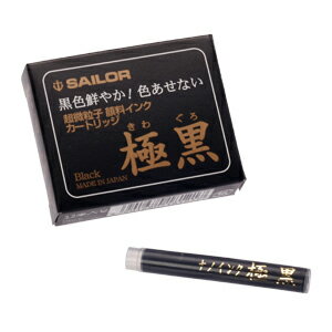最高のインクです!にじまない!色あせない!目詰まりしない!セーラー 万年筆用 超微粒子顔料インク 極黒(きわぐろ)カートリッジ【メール便対応】 価格: 504円 レビュー評価:0.0 レビュー数:0 <詳細>インク:超微粒子顔料インク(ナノインク)ブラック容 量:28g本体サイズ:4.5 x 1.3 x 5 cm ; 28 g本数:12本販売価格:630円この極黒インクは耐水性に優れ、目詰まりがなく、筆跡がシャープで綺麗!!そして、インクが紙ににじまず裏うつりもないので公文書などにも最適です。いままでの水性染料インクに比べ、書き味・品質共に最高レベルを極めたハイグレード顔料ナノインク『極黒』をぜひ1度お試し下さい! <極黒(きわぐろ)の特徴>1,耐水性に優れています! 筆跡が水や雨で流れてしまう染料インクと違い、耐水性は抜群!2,目詰まりが無く、筆跡がシャープで奇麗! これぞ超微粒子(ナノ Supported by 楽天ウェブサービス |